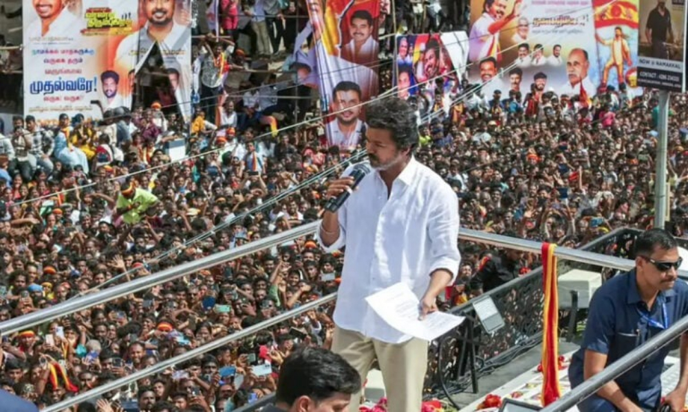 وجے کی ریلی میں عوام کی بڑی تعداد پہنچی جس پرجگہ کی کمی کے باعث بھگدڑ مچی ۔ یہ واقعہ وجے کے خطاب کے دوران پیش آیا۔