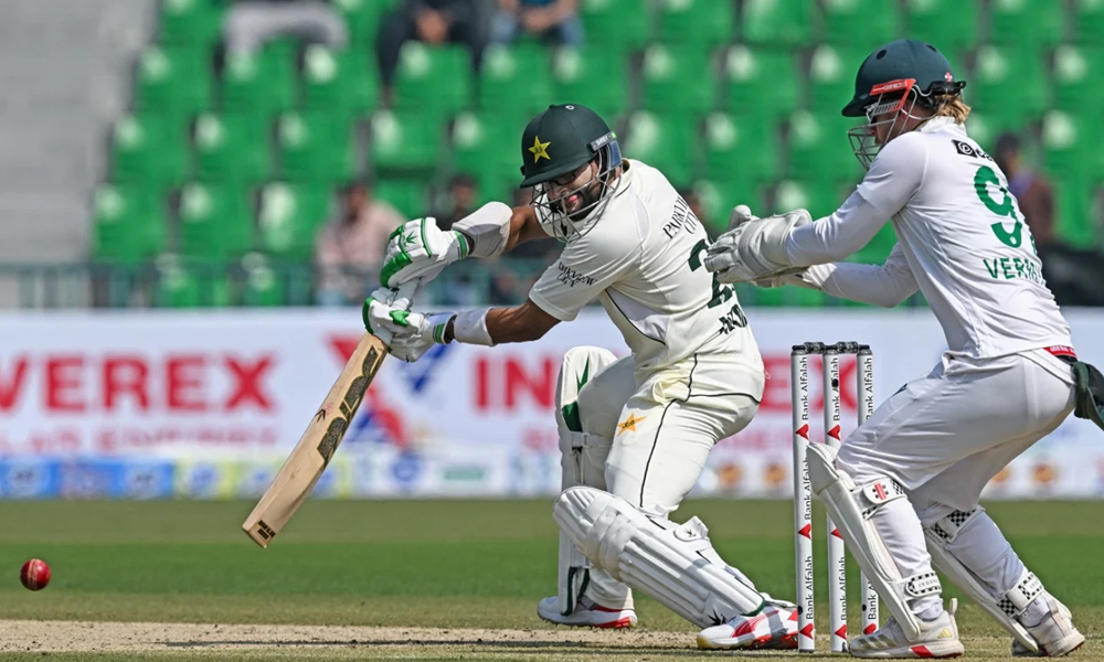 تاہم، رضوان اور آغا سلمان نے چھٹی وکٹ پر 114 رنز کی شاندار شراکت قائم کرتے ہوئے ٹیم کو سنبھالا دیا اور دن کے اختتام تک مزید کوئی نقصان نہ ہونے دیا۔