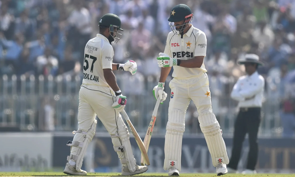 پاکستان نے کھیل کے دوسرے روز اپنی پہلی نامکمل اننگز کا آغاز 259 رنز 5 کھلاڑی آؤٹ سے کیا تو سعود شکیل 42 اور آغا سلمان 10 رنز کے ساتھ وکٹ پر موجود تھے۔