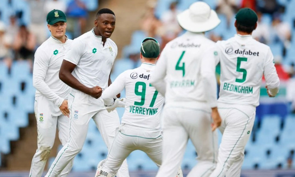 خیال رہے کہ پاکستان نے اپنی پہلی اننگز میں 333 رنز اسکور کیے تھے جس میں کپتان شان مسعود نے 87 رنز کی شاندار اننگز کھیلی تھی جبکہ سعود شکیل نے 66 اور عبداللہ شفیق نے 57 رنز کی اننگز کھیلی تھی۔ جنوبی افریقا کی جانب سے کیشوو مہاراج نے 7 کھلاڑیوں کو آؤٹ کیا تھا۔
