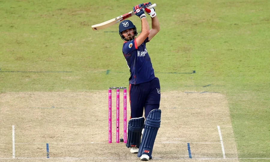 فرائیلنک 9، لافٹی ایٹون 5، اسٹینکیمپ 23 اور کپتان جرہارڈ ایراسمس 7 رنز بناکر پویلین لوٹ گئے جب کہ پاکستان کی جانب سے سلمان مرزا، محمد نواز اور شاداب خان نے ایک ایک وکٹ حاصل کی۔