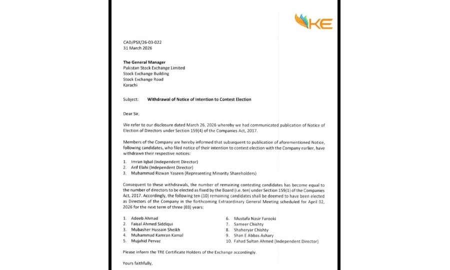 Home » کے الیکٹرک کے بورڈ انتخابات میں تین امیدوار دستبردار، 10 ڈائریکٹر بلامقابلہ منتخب